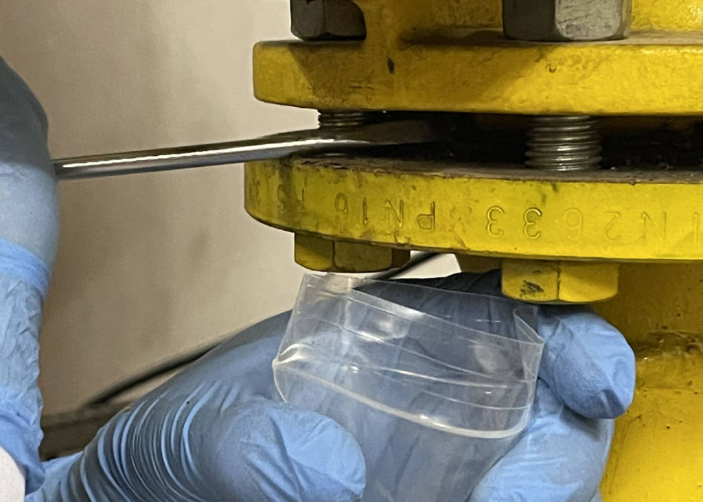 Les mains gantées et munis de ses outils, notre technicien réalise un diagnostic amiante dans une chaufferie qui nécessite des travaux de rénovation. Ces diagnostics requièrent précision et dextérité, comme ici, où l’échantillon est prélevé sur un joint de bride qui doit être atteint puis extrait à l’humide avec minutie (technique non invasive). A découvrir […]